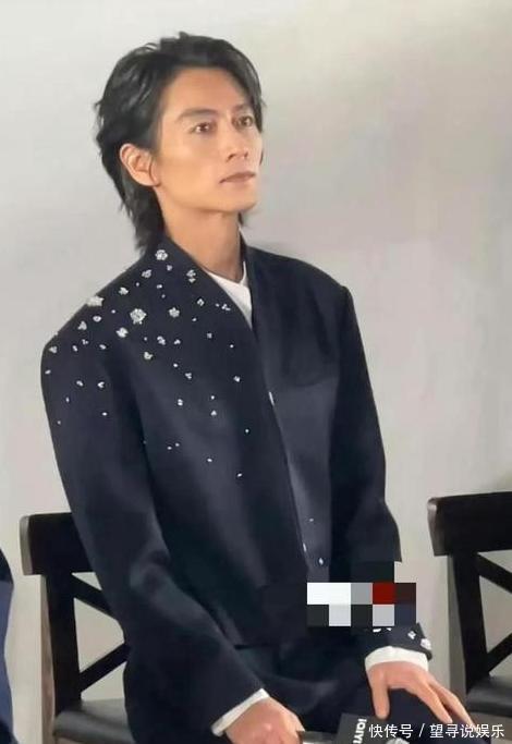 当天他馋了一身黑色西装,上衣肩膀处还有几颗钻花做点缀。几个月不见他的头发也留长了,出席活动还专门做了卷发造型,依然帅气不减。